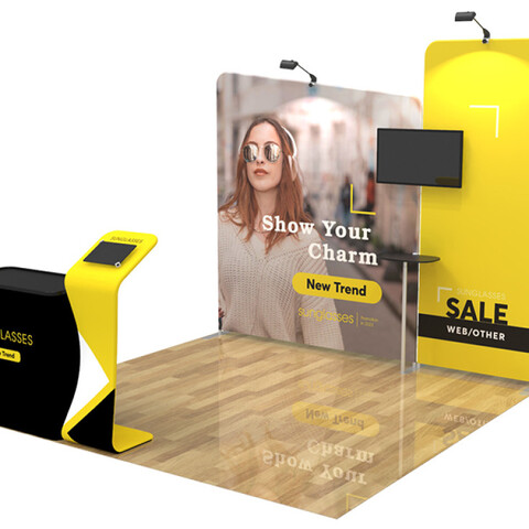 Are you interested in creating an exhibit booth that will be the #1 eye-catcher at your next event? Attract attention and build brand awareness with our custom 10x10ft booth designs. Our aluminum-framed booths are manufactured to be easily transported and dismantled, offering an efficient option for advertising at any event.