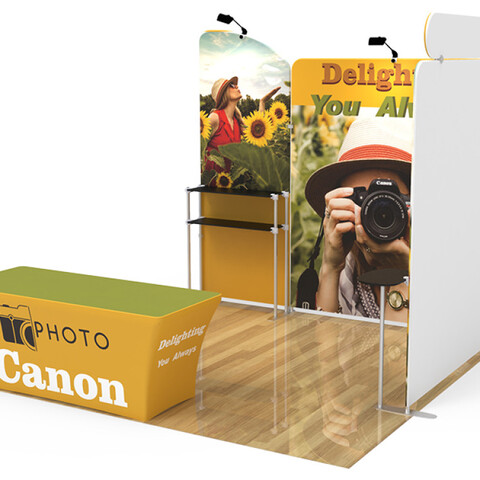 Are you interested in creating an exhibit booth that will be the #1 eye-catcher at your next event? Attract attention and build brand awareness with our custom 10x10ft booth designs. Our aluminum-framed booths are manufactured to be easily transported and dismantled, offering an efficient option for advertising at any event.