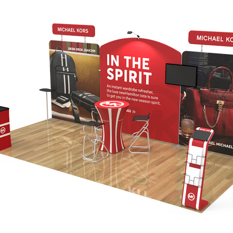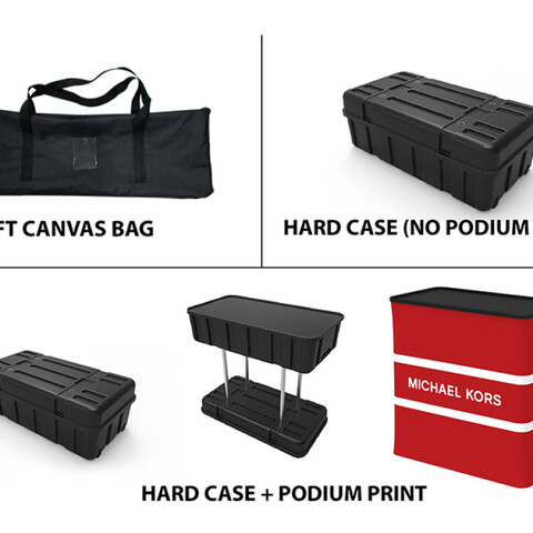 Featuring 2 custom flat tension fabric backwall displays, 2 custom flat tension fabric headers, 1 monitor brackets, 2 tension fabric shelving kits, 1 custom higboy bar height cocktail table, 1 hard case to poduim with custom printed graphic, 1 tension fabric iPad, tablet and literature banner stand, and 1 tade show display LED light and light clip, this booth has the ability to engage any audience.