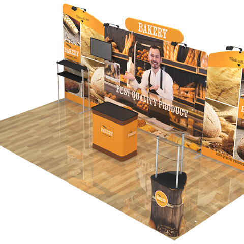 Are you interested in creating an exhibit booth that will be the #1 eye-catcher at your next event? Attract attention and build brand awareness with our custom 10x20ft booth designs. Our aluminum-framed booths are manufactured to be easily transported and dismantled, offering an efficient option for advertising at any event.