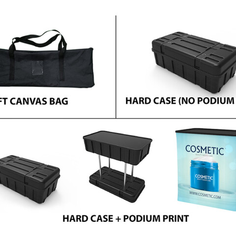 Featuring 1 custom flat and durable tension fabric trade show backwall display, 2 custom angled top tension fabric backwall displays, 1 hard case to podium with custom printed graphic, 1 snakelike/serpentine brochure and literature banner stand, 1 rectangular display counter with full color print, 4 trade show display LED lights and light clips, 2 banner stand LED lights and light clips, 1 curved top tension fabric banner stand, 2 arm shelves for top tension fabric banner stand and 1 monitor bracket, this booth has the ability to engage any audience.