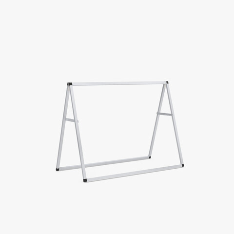 Our 4ft A-Frame is great for high foot traffic events and can be used indoors and outdoors. The poles are made of lightweight yet durable aluminum and plastic connectors. With its locking mechanism, the frame can be easily set up and folded up for storage.The hardware includes hook and bungee cords that wrap around the aluminum poles for secure attachment.