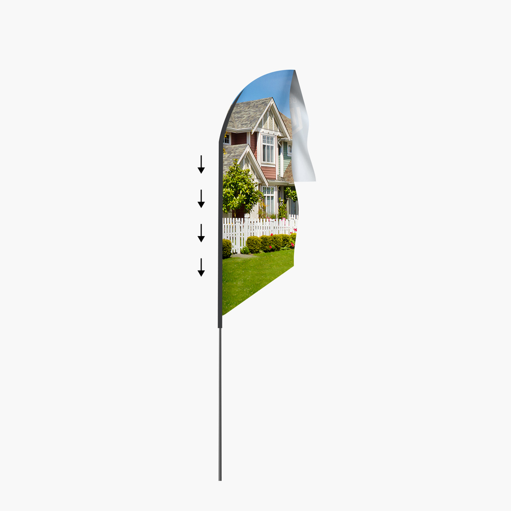 Feather Angled Flags tower over the competition—take advertising to new heights with these full color skyscrapers. With several base options they can be displayed indoors and outdoors.