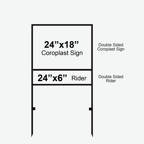 The Real Estate Frame is perfect for advertising installation in soft ground; such as lawns, medians, fields. The sturdy and durable black powder coated frame is constructed of steel for maximum strength and longevity. The pointed legs make installation a cinch as they can be driven into turf with ease. The double-sided coroplast graphics drop into the frame and are held into place with clips. The frame holds 1 double-sided 18 x 24" sign and an additional 6" x 24" rider.