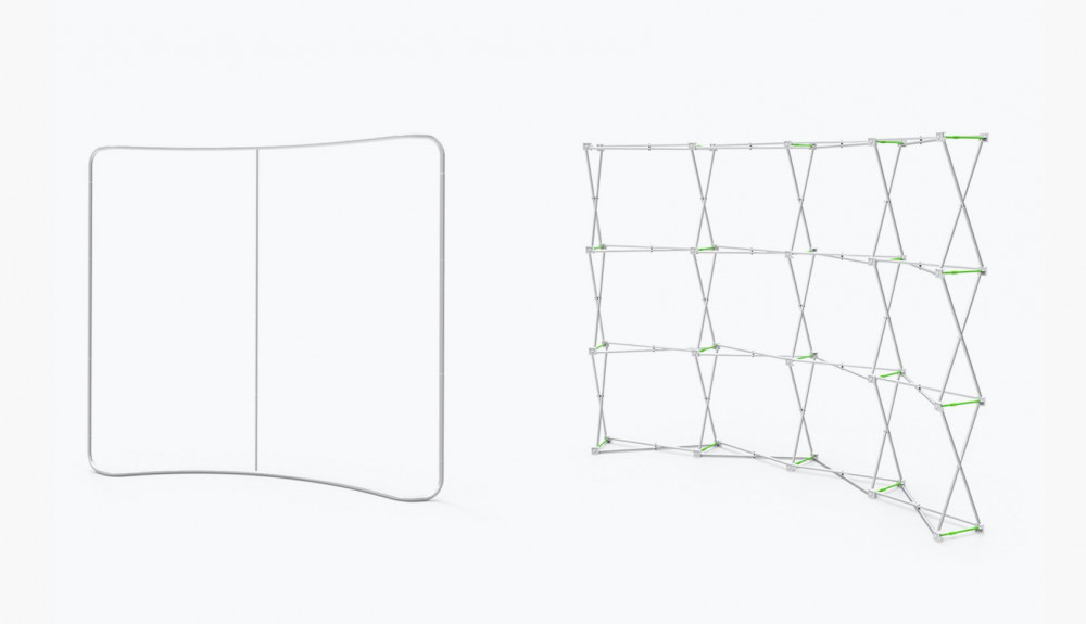 Quick setup accordion style hardware with velcro attached graphics