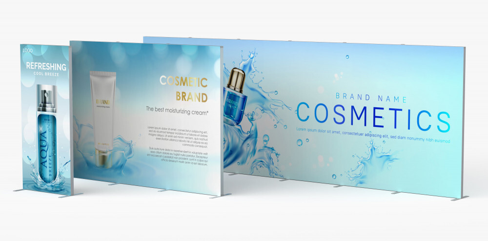 Non-lit and backlit fabric Silicone Edge Graphics displaysSilicone edged fabric graphics slot into aluminum frames for easy installation