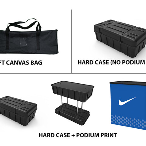 Featuring a fabrice trase show backwall display, a flat tension fabric header, four tube columns, two LED Lights and light clips, six hangers, a hard case podium, a display tower counter and a serpentine brochure and literature banner stand, this unique booth has the ability to engage any audience.