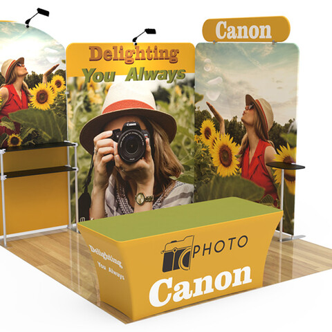 Are you interested in creating an exhibit booth that will be the #1 eye-catcher at your next event? Attract attention and build brand awareness with our custom 10x10ft booth designs. Our aluminum-framed booths are manufactured to be easily transported and dismantled, offering an efficient option for advertising at any event.