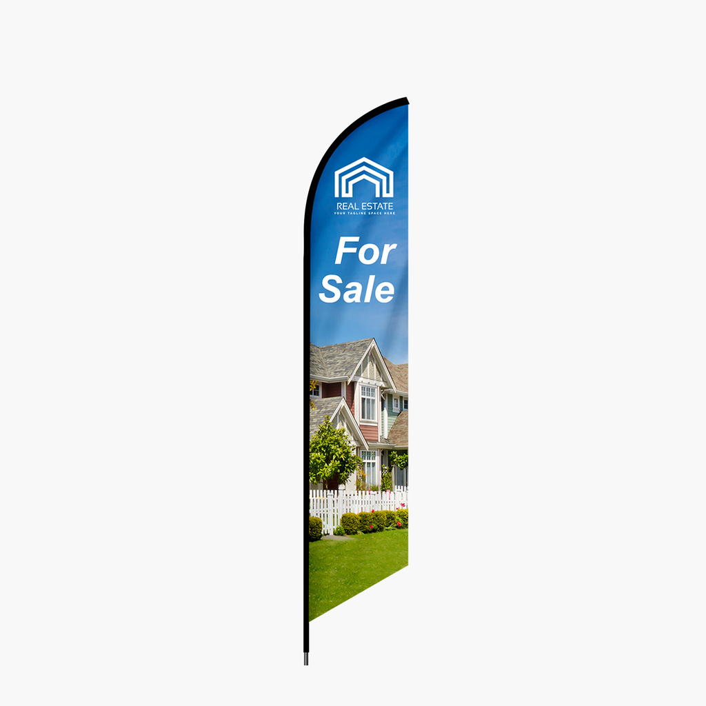 Feather Angled Flags tower over the competition—take advertising to new heights with these full color skyscrapers. With several base options they can be displayed indoors and outdoors.